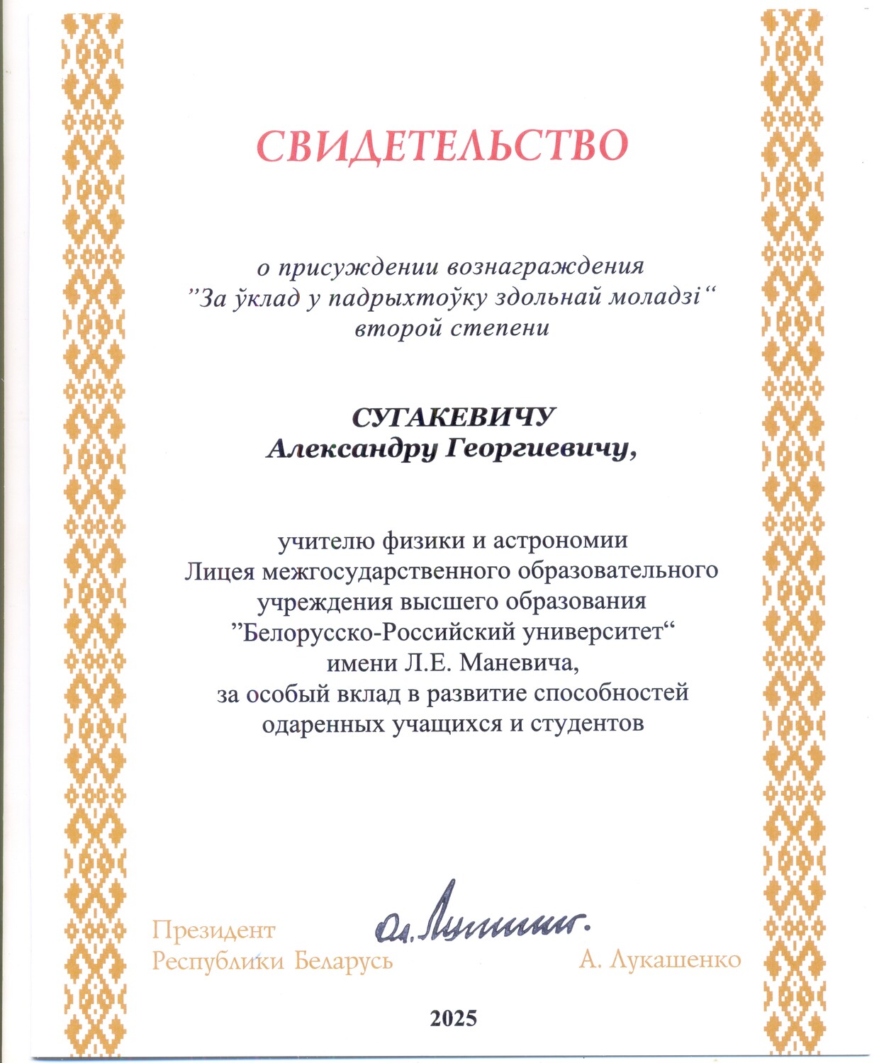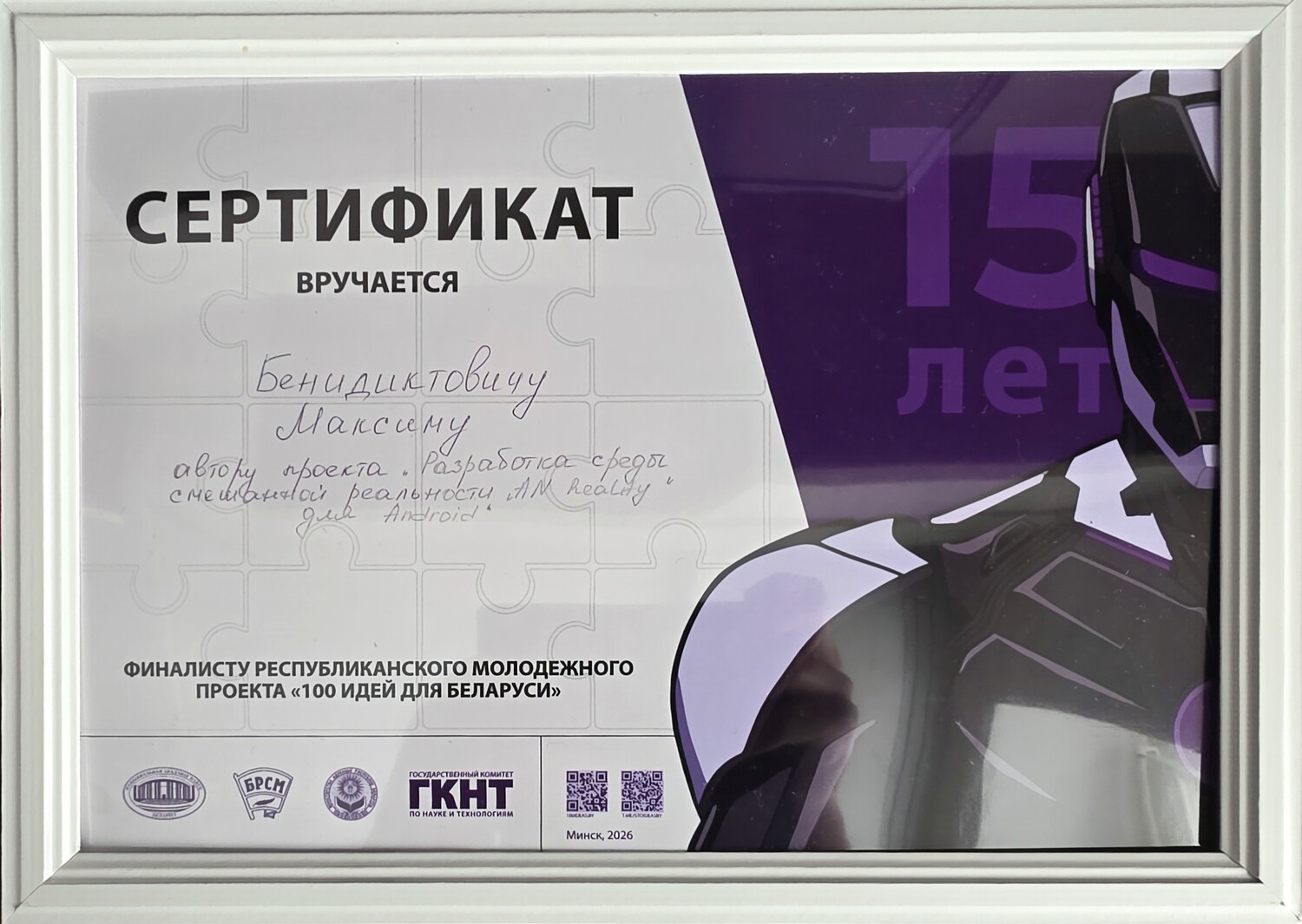 Учащийся лицея Максим Бенидиктович в награждён дипломом II степени Конкурса научно-технического творчества Союзного государства "Таланты XXI века".