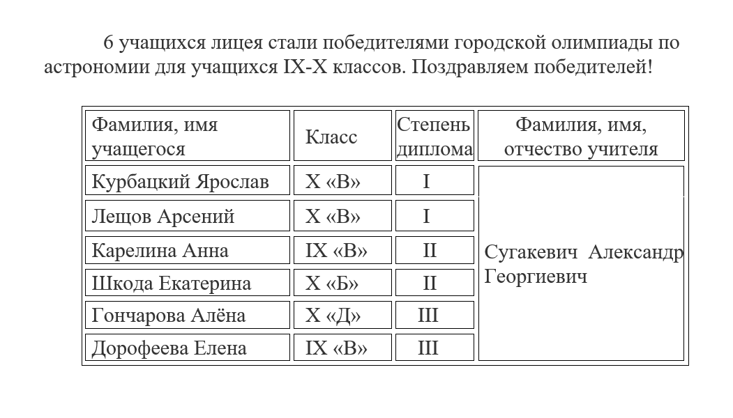 Подведены итоги областного конкурса исследовательских работ учащихся. Поздравляем учащихся лицея - победителей конкурса!!!