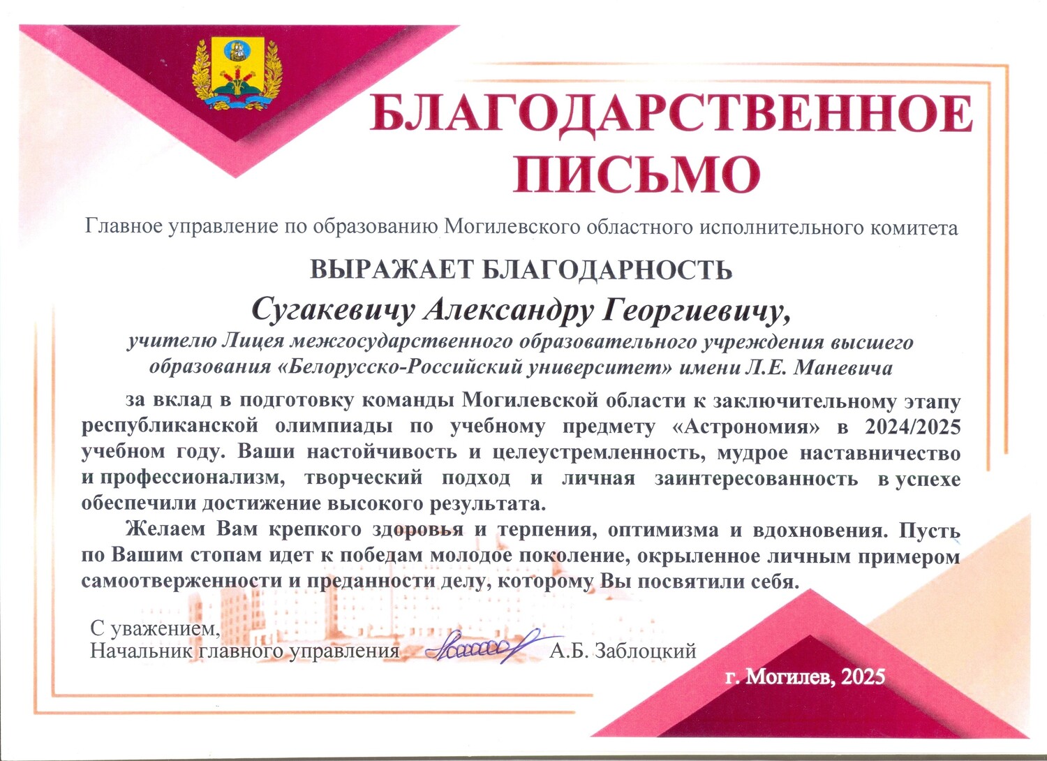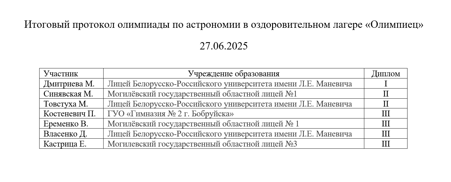 с 24 по 28 марта 2025 года в Могилёве прошёл заключительный этап Республиканской олимпиады по учебному предмету "Астрономия".